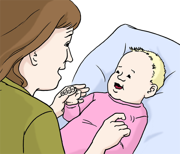Sie üben mit den Kindern das Sprechen.