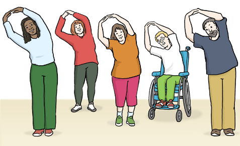 Gymnastik machen. - Bei der Katholischen Erwachsenen-Bildung